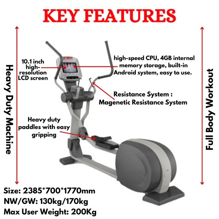 Designed for excellence, this handheld heart rate monitor-equipped machine stands as India’s best. Elevate your workouts with the top-tier Commercial Elliptical Cross Trainer – your gateway to unmatched fitness.