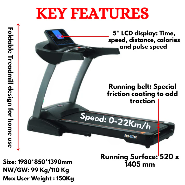 Soniya Sports semi commercial treadmill for sale is a high-grade and import quality product. Its build-up consists of the finest raw materials that make it a long-lasting product. In addition to an outer commercial finish, it also has a powerful motor and stable running surface that makes exercising easier.